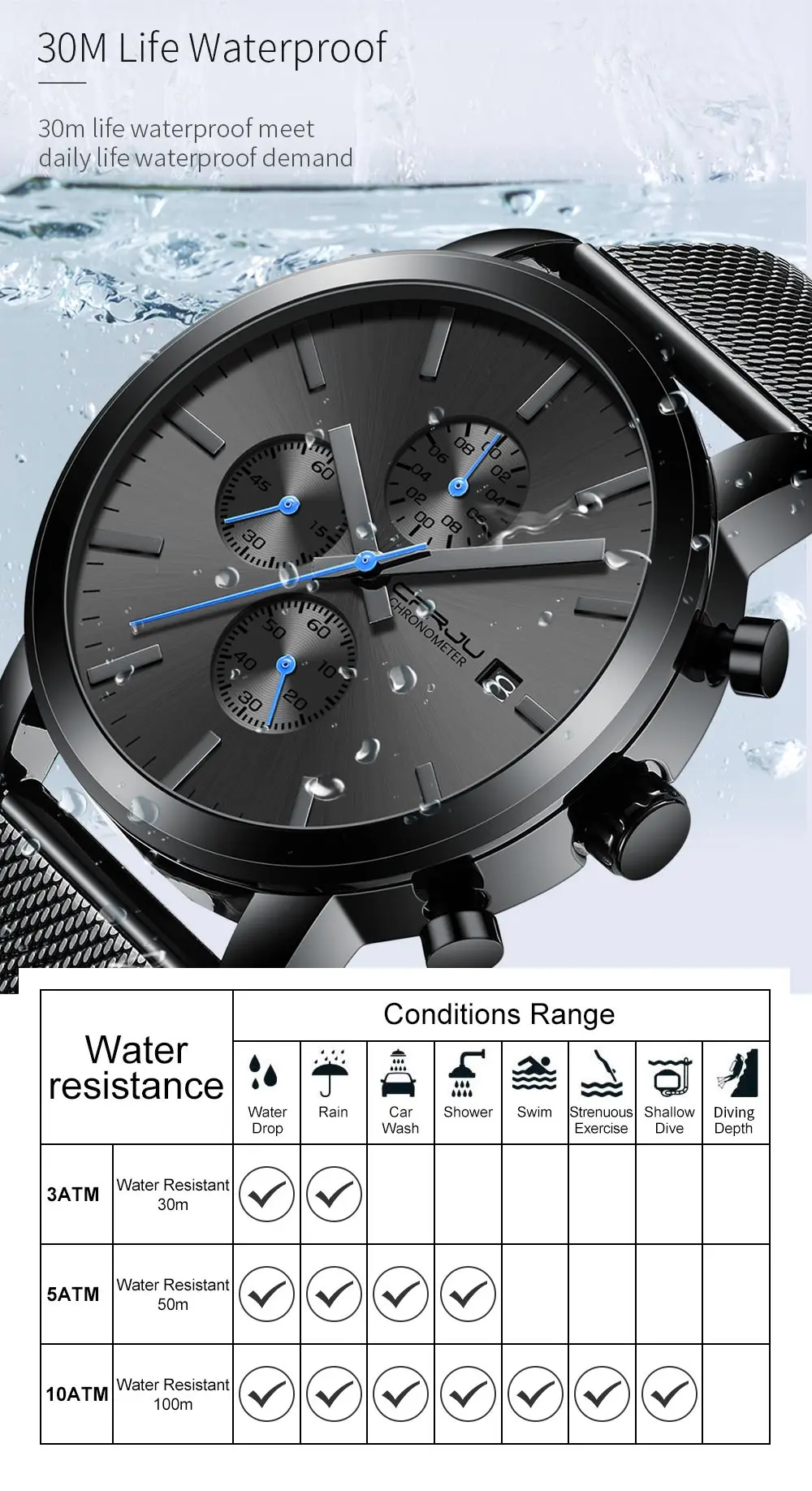 - Water Resistance Depth: