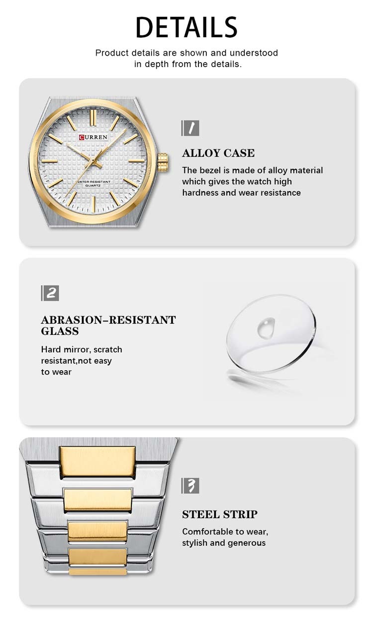 CURREN 8439 new arrival quartz watch latest Stainless steel strap Waterproof wristwatch for men