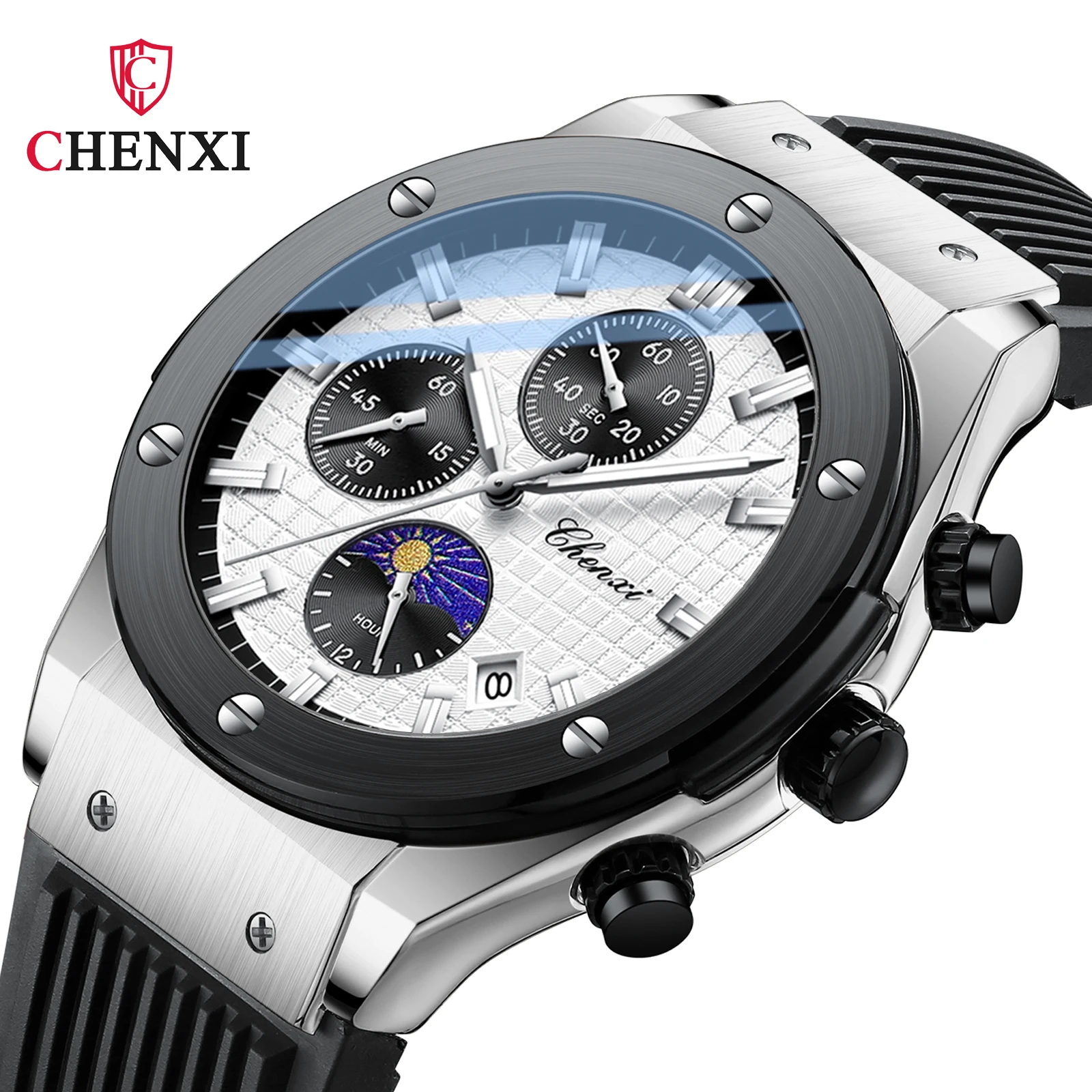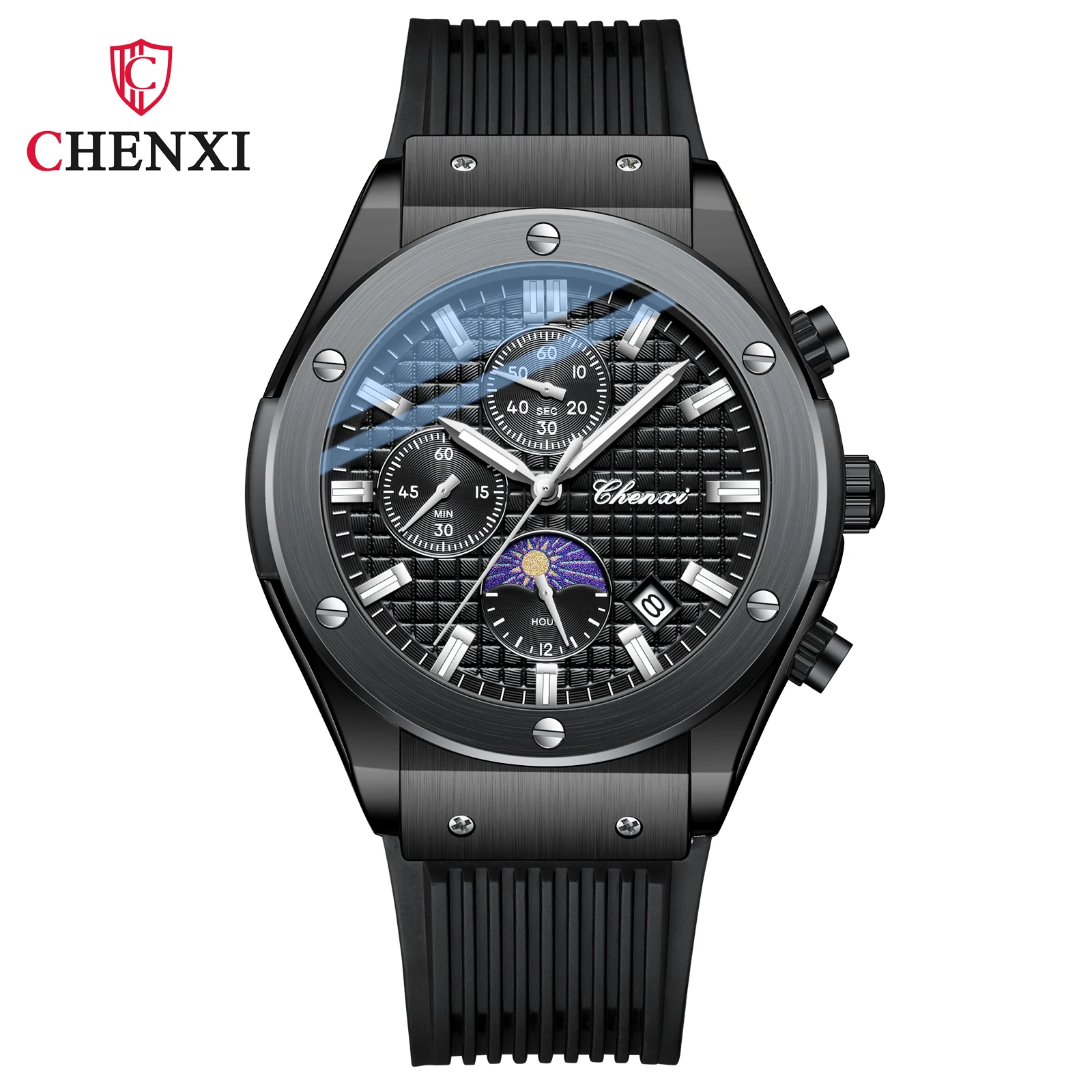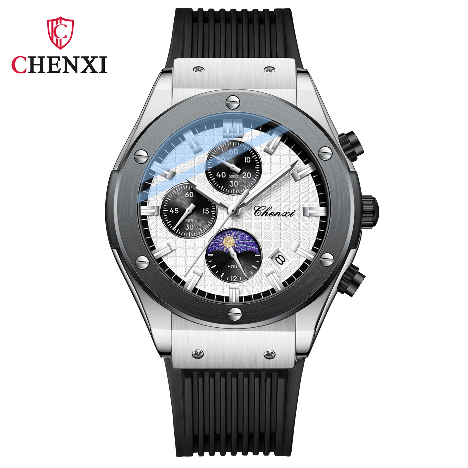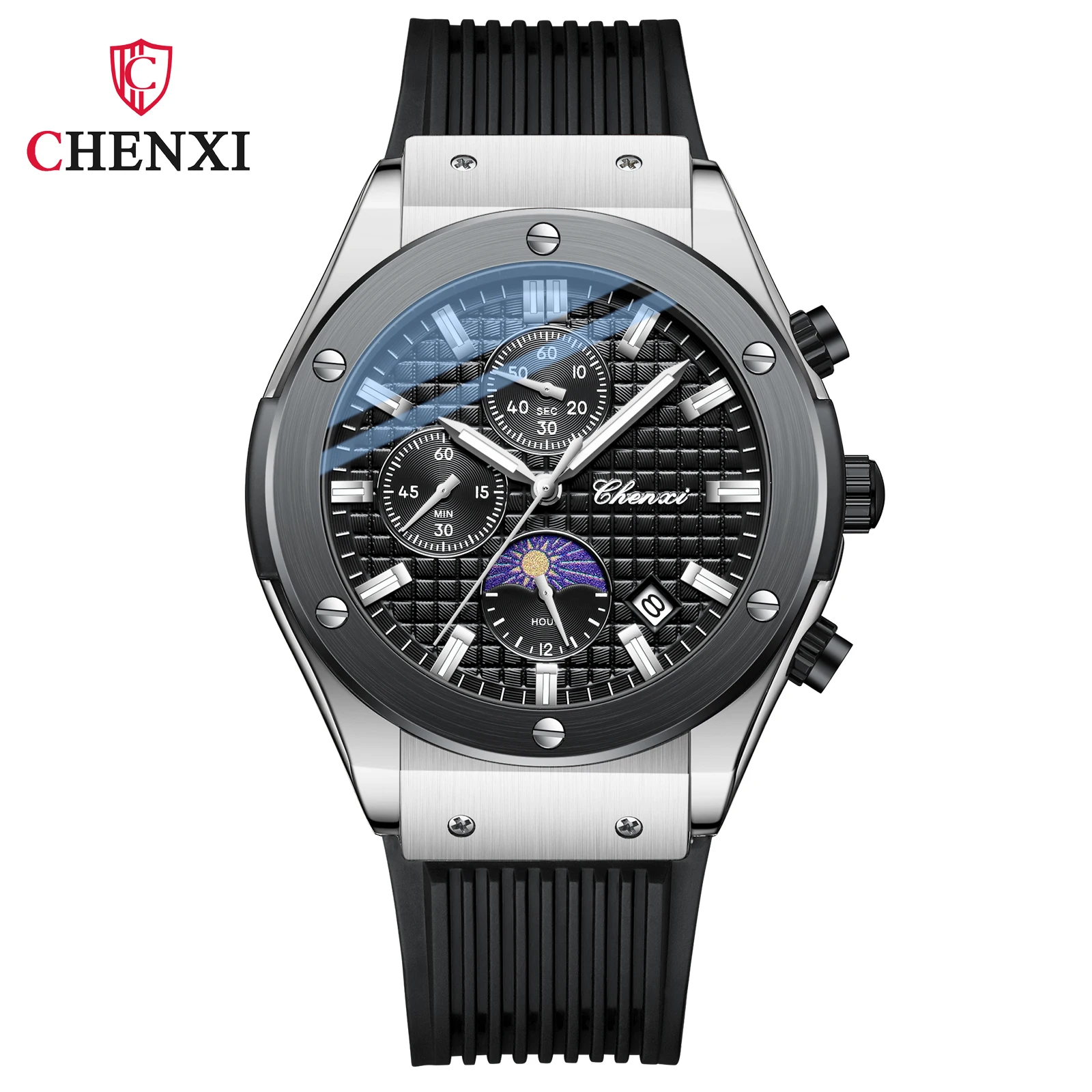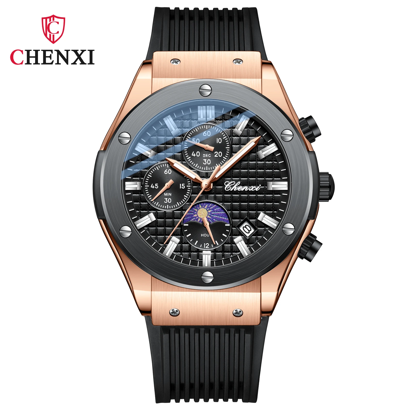 Chenxi new arrival multi function calendar man quartz watch Silicone band Chronograph lumionus business wristwatch