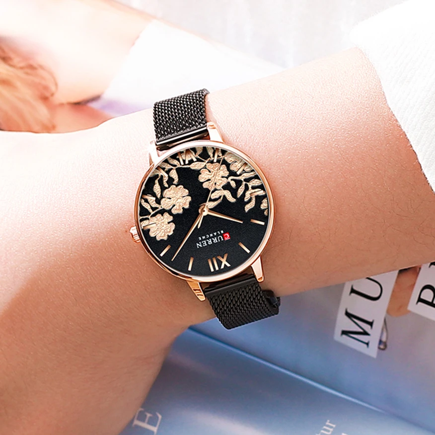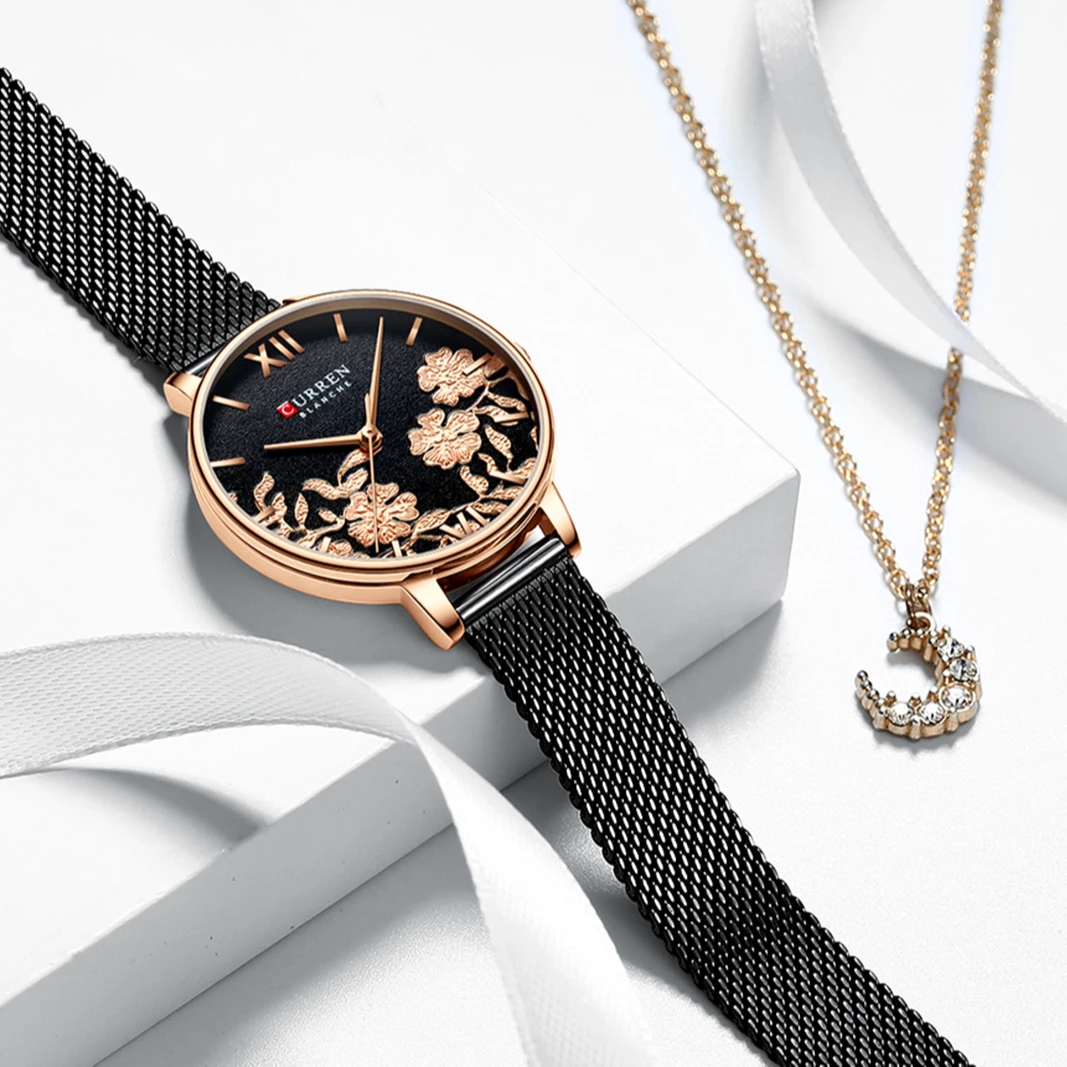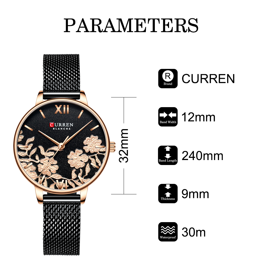 Curren 9065 Women Watches Top Brand Luxury Stainless Steel Strap Wristwatch for Women